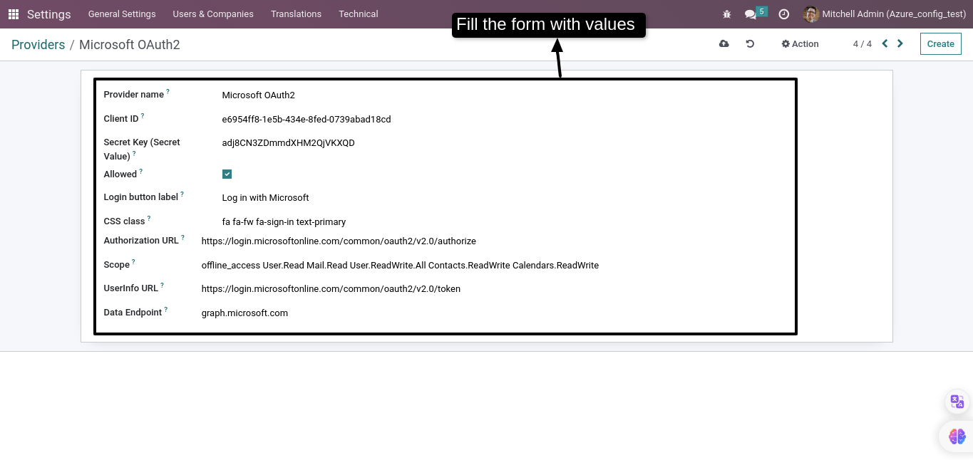 In Microsoft OAuth2 page fill the form if it’s not already filled