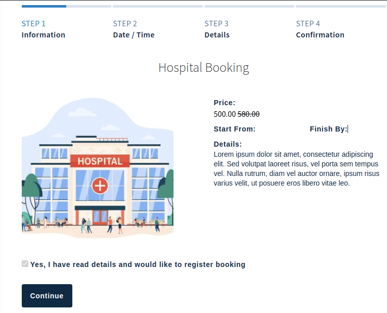 - Users will see the bookable service or product on the front end with the booking information added by the admin as illustrated in the image below.
