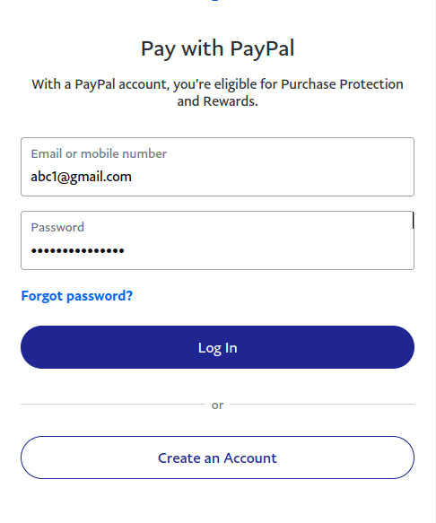 After clicking on the checkout button, a login page will appear, where you must enter your sandbox account email and password.
