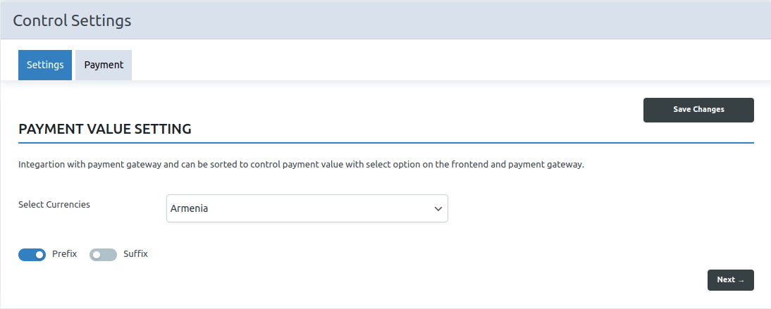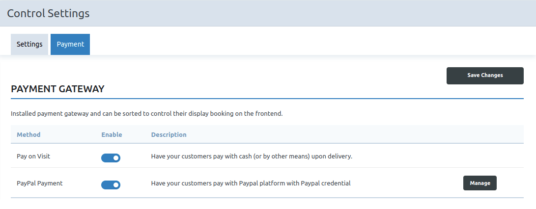 After Saving the “Save Changes” button. You will be displayed the Payment Method.