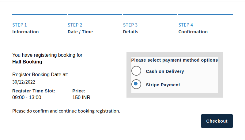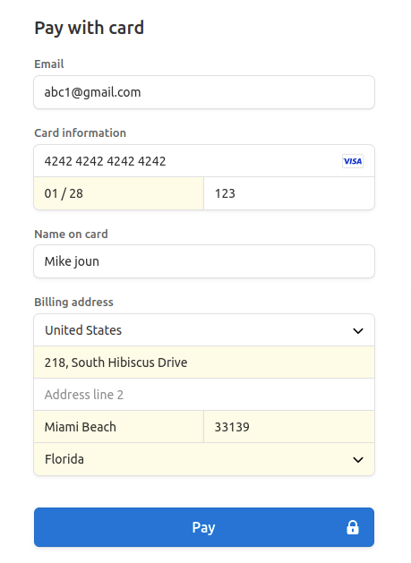 Fill out the Form. Click on the Pay button. Transaction Completed. It will be displayed in the payment tab and appointment details display in the appointment tab.