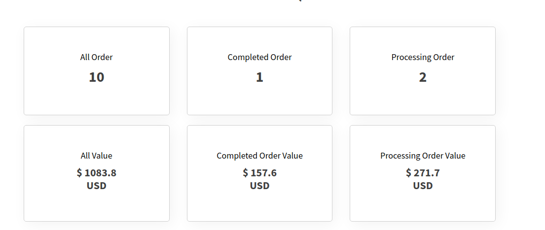• All the Woocommerce order statuses are displayed here with respective counts.
