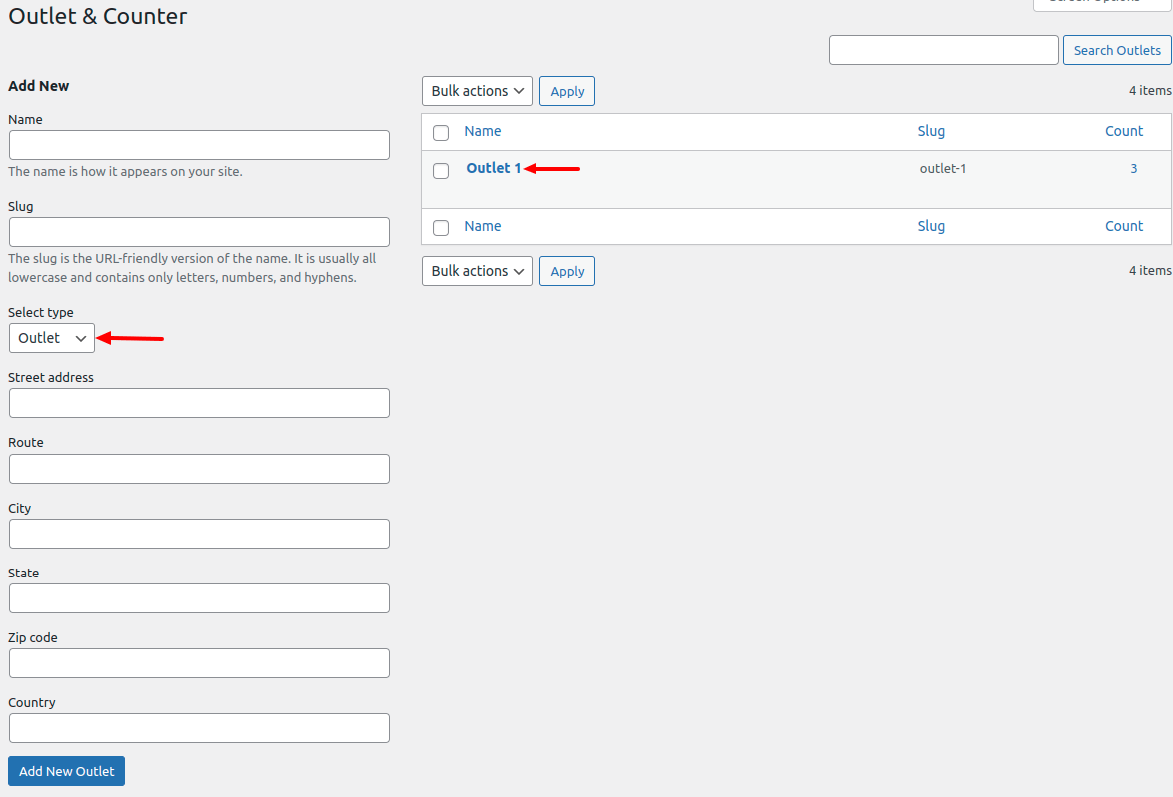 - Fill out all the details shown in the below image and click on “Add Outlet.“