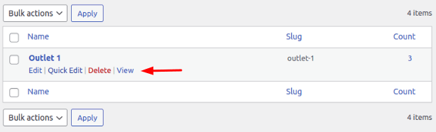 - As shown in the image below, all of the Outlets added by the user are listed here. The user can update the outlet by clicking “edit,” or delete it by clicking “delete.”