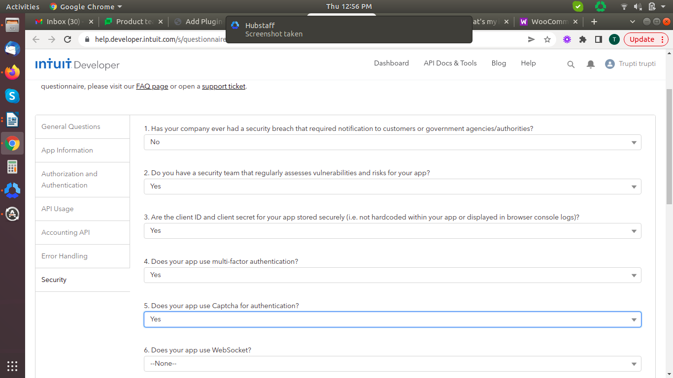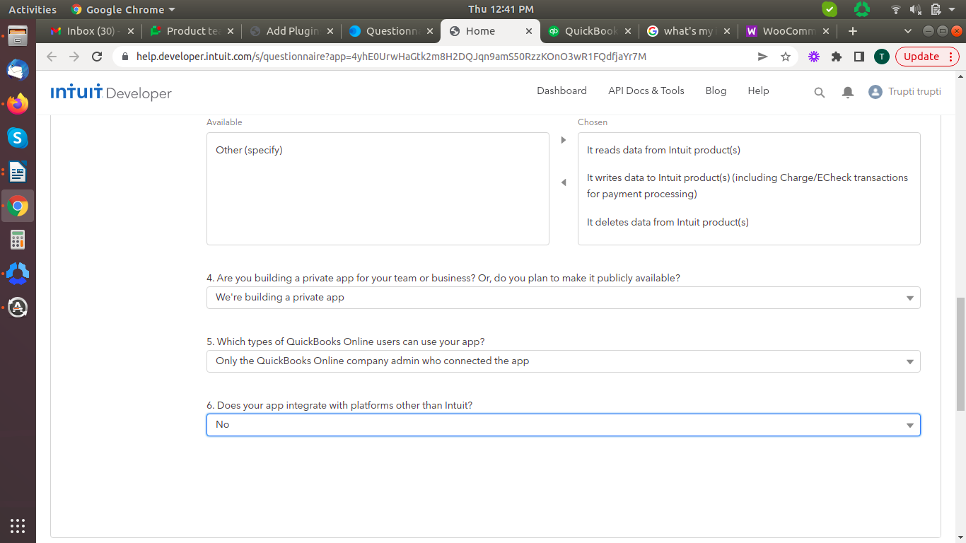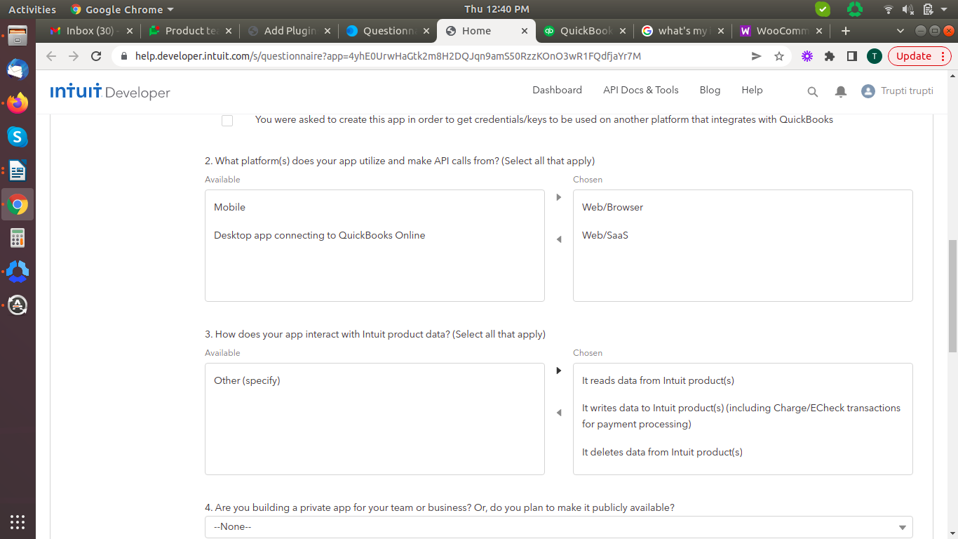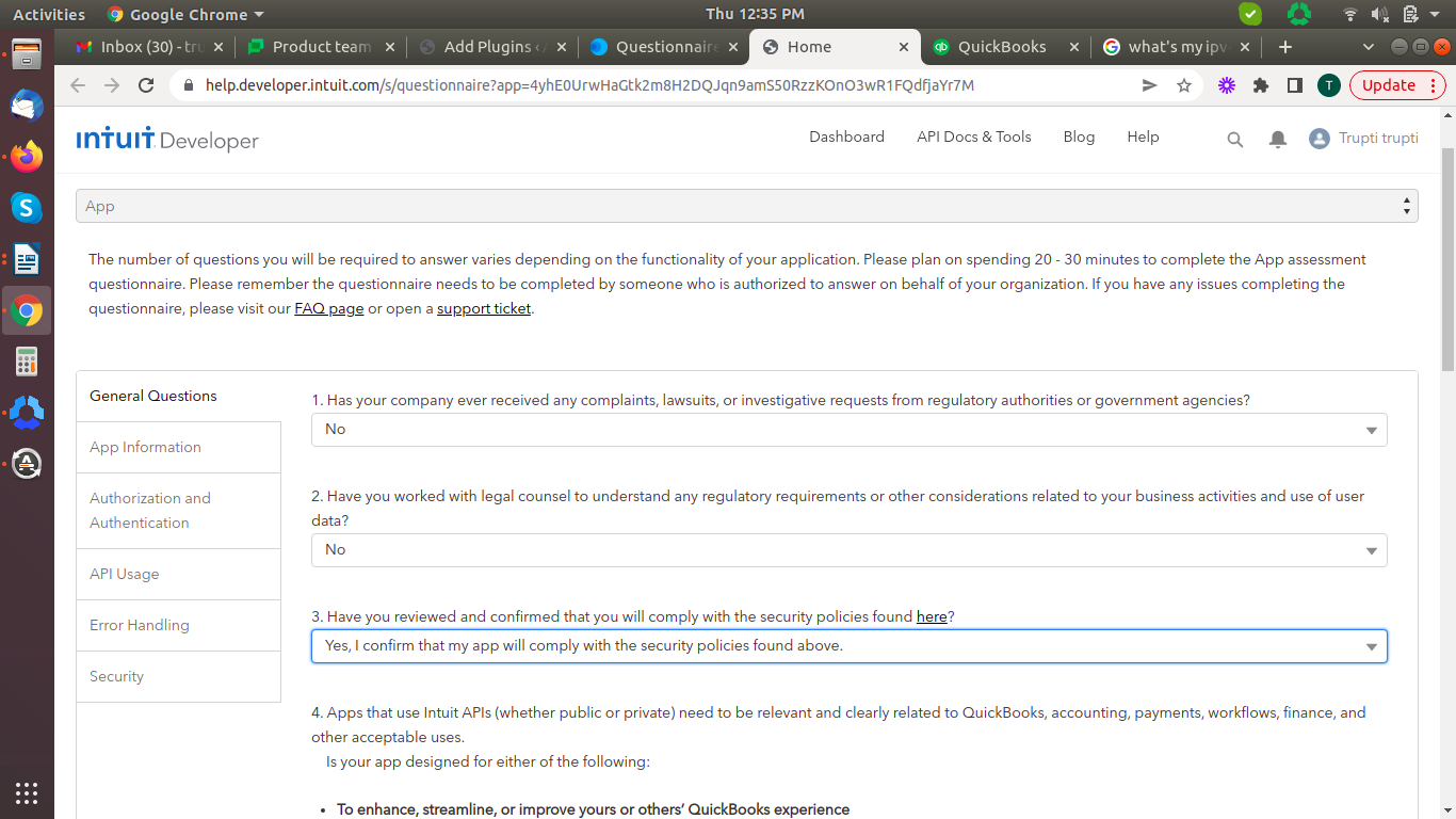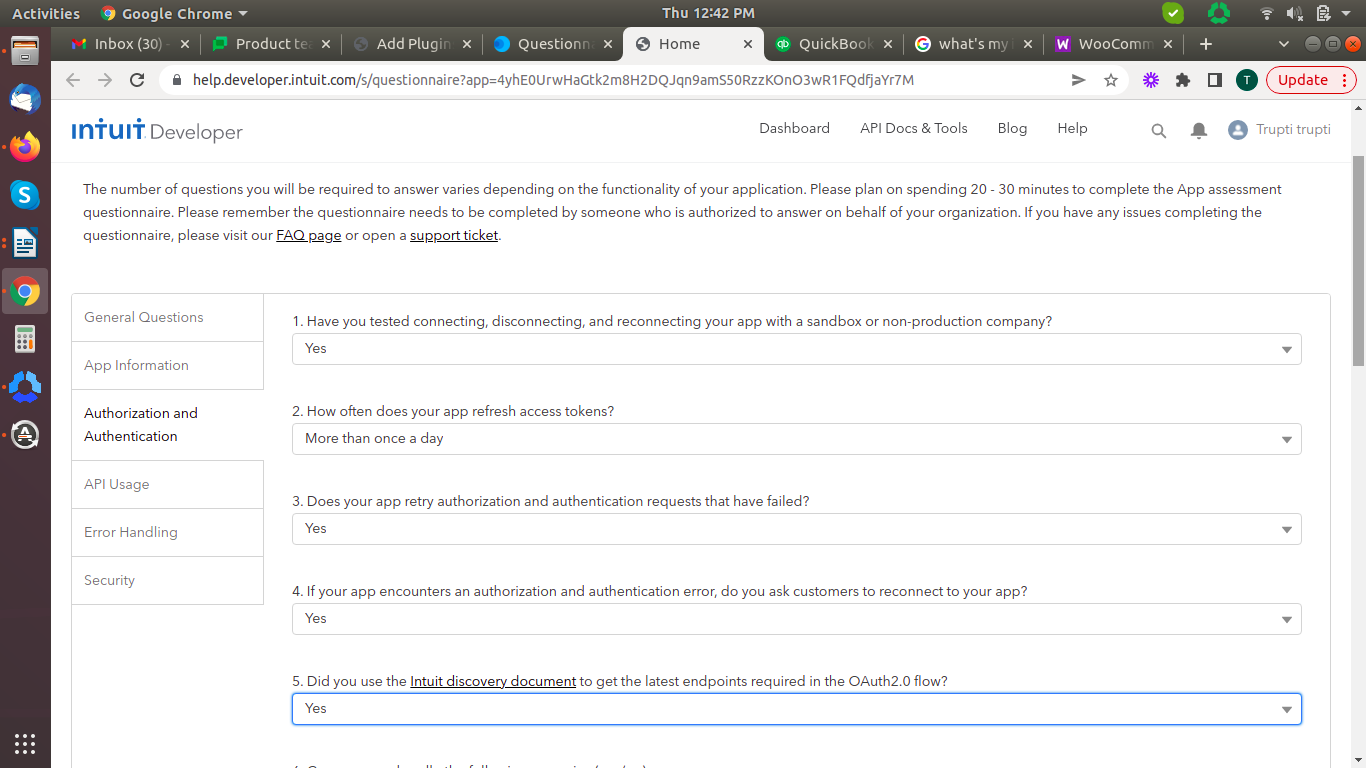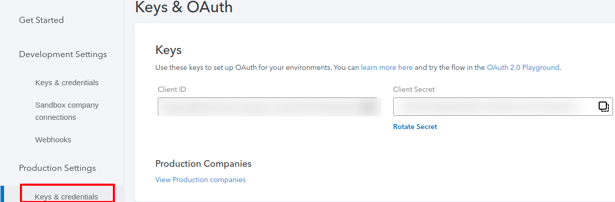 To obtain the Client ID and Client Secret keys for a Production account type, Intuit will prompt you to complete the App assessment questionnaire.