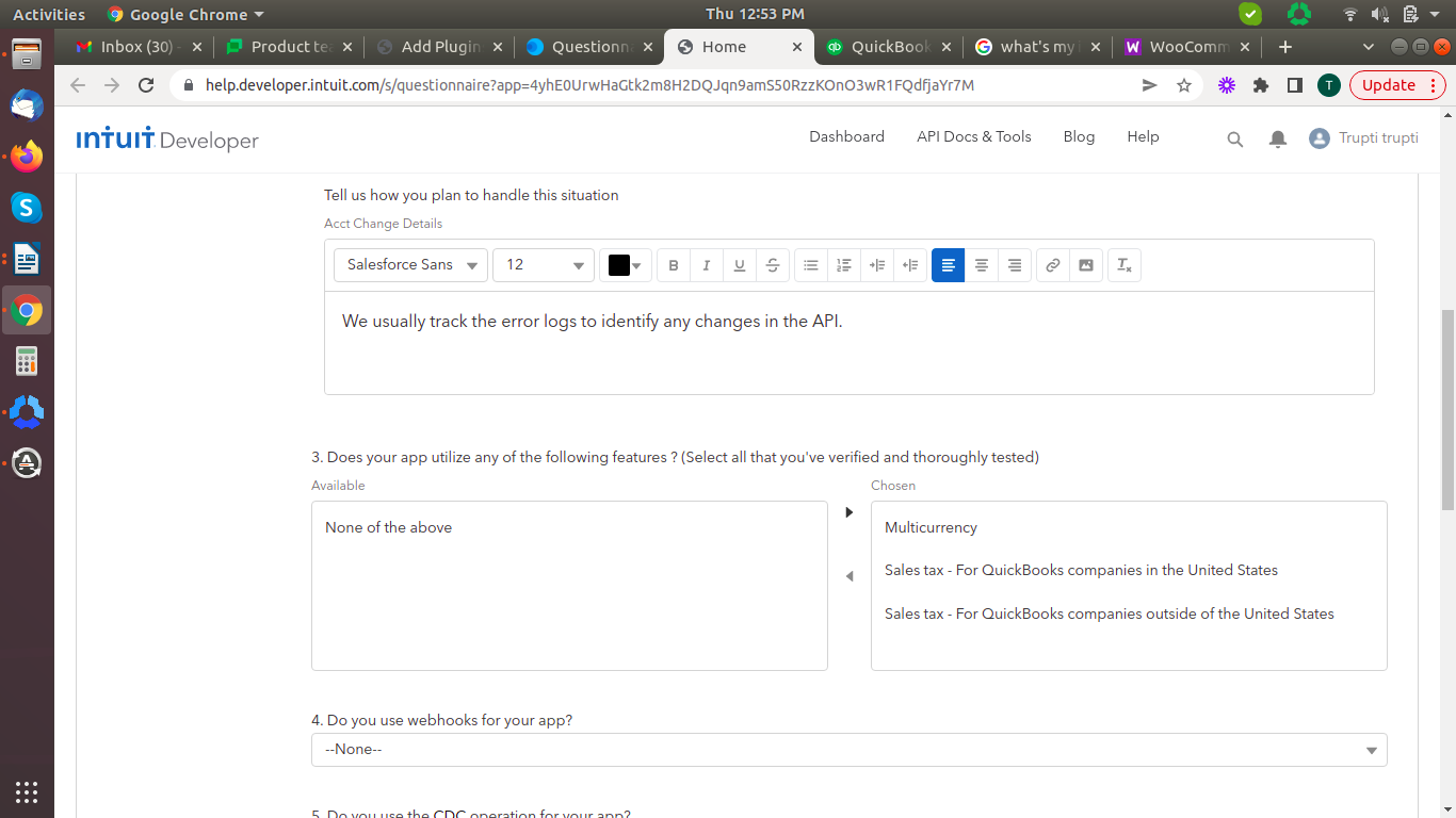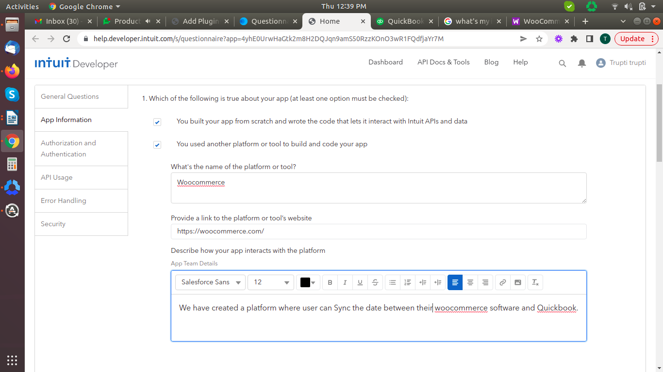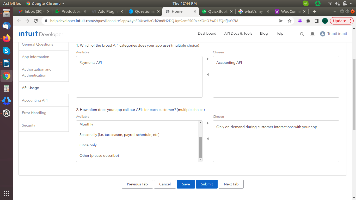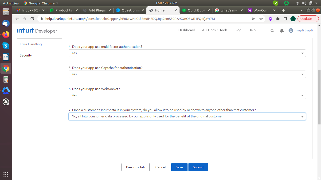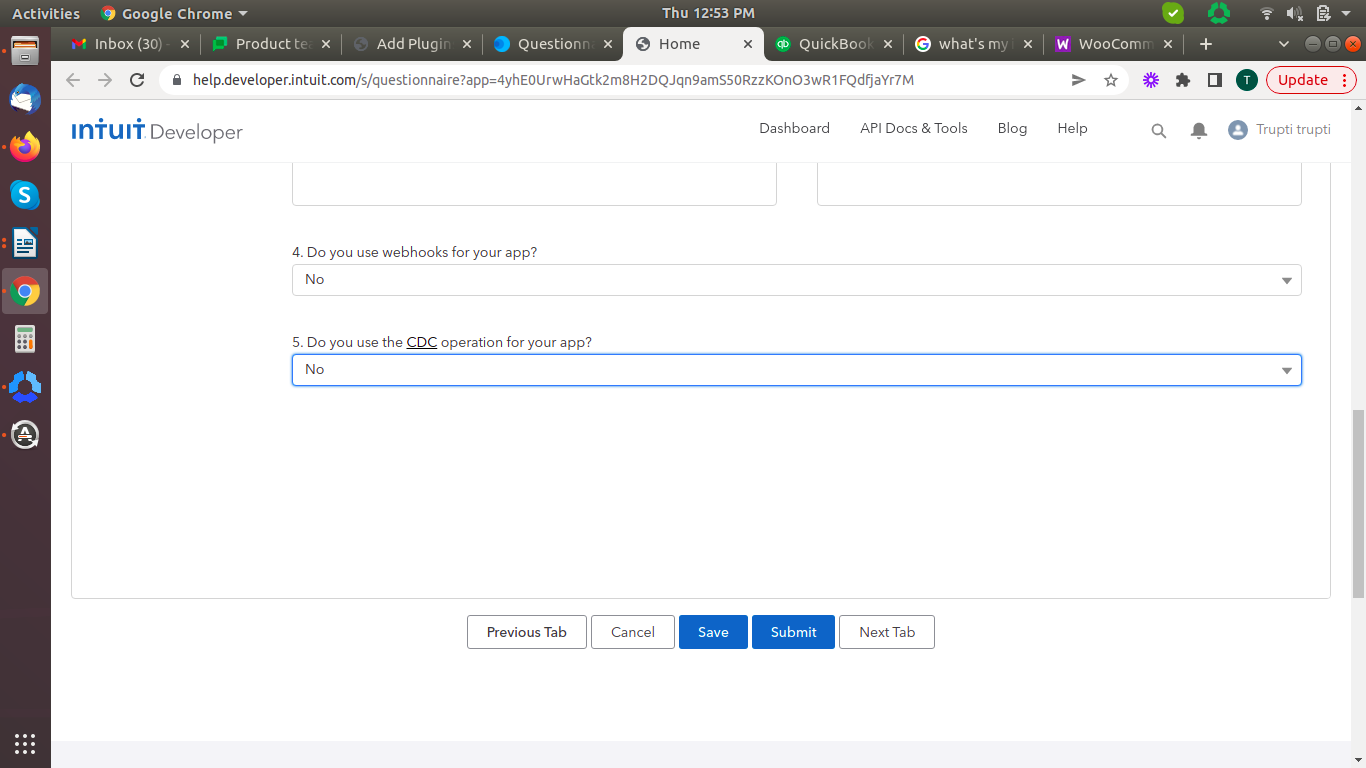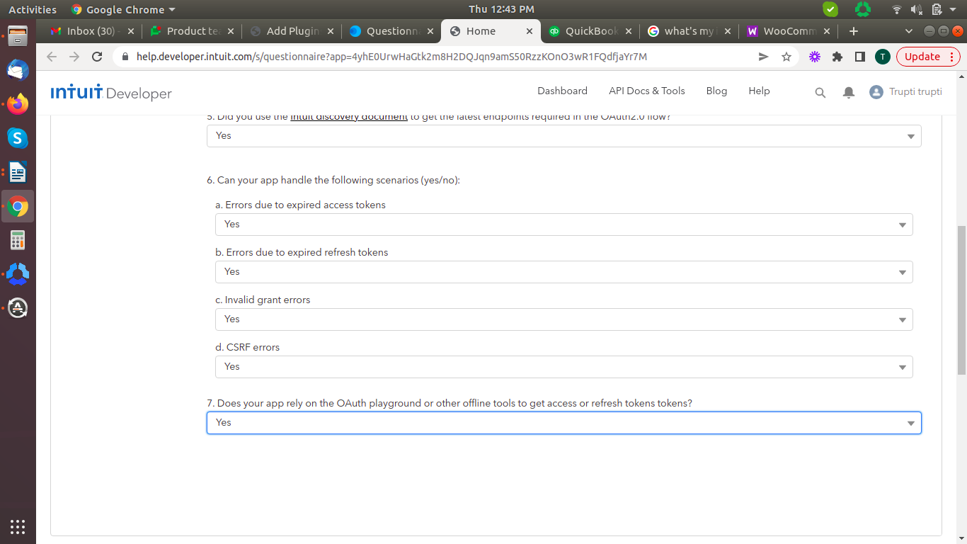 To obtain the Client ID and Client Secret keys for a Production account type, Intuit will prompt you to complete the App assessment questionnaire.