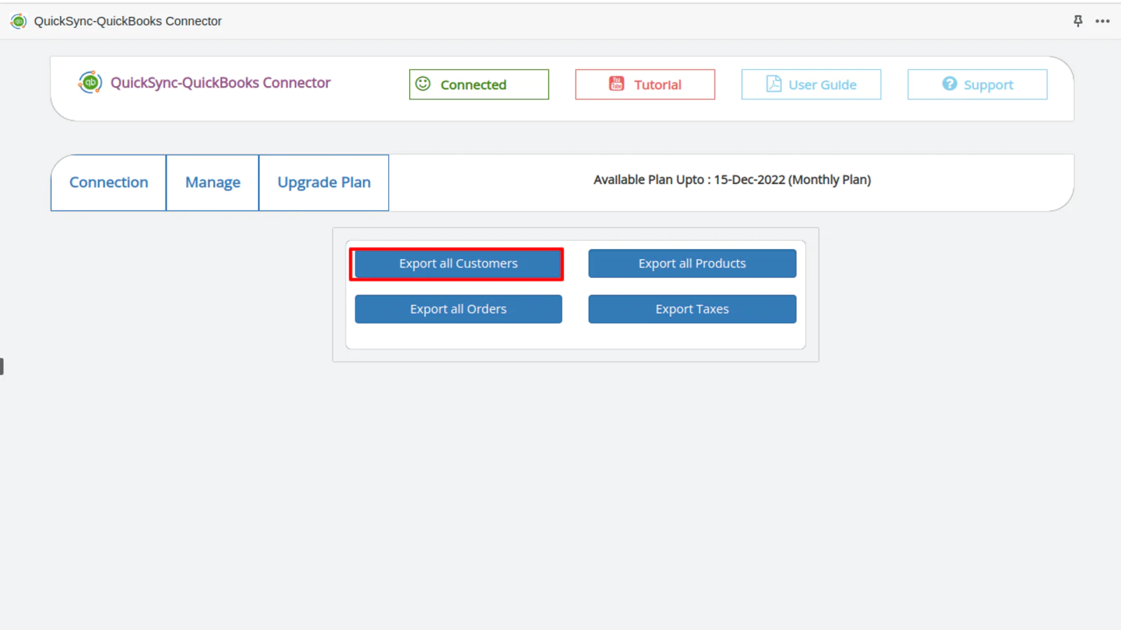 1. Export all customers from Shopify to QuickBooks.