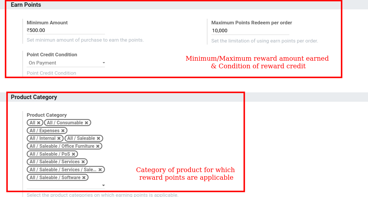 Product Category:- It is field where we select the product categories for which we want reward points accessible.