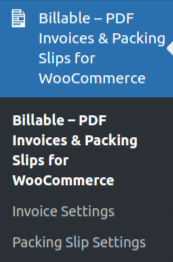- Once you installed and activated the Billable – PDF Invoices & Packing Slips for WooCommerce. It will appear like the below image in the left pane of your WordPress backend.