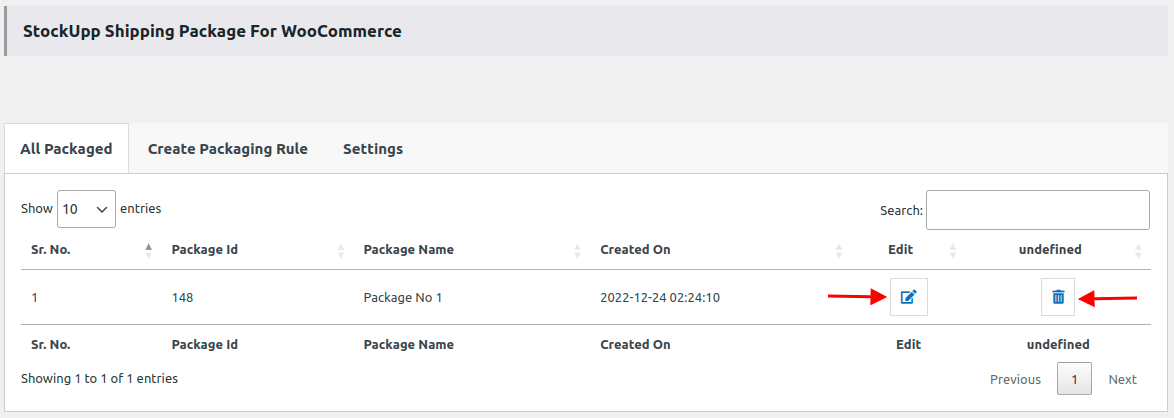 - We can delete the created package using the delete Icon. And we can edit the rule using the Edit icon.