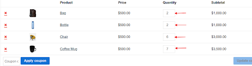 - The first product has a quantity of two, the second product has a quantity of two, the third product has a quantity of six, and the fourth product has a quantity of seven.