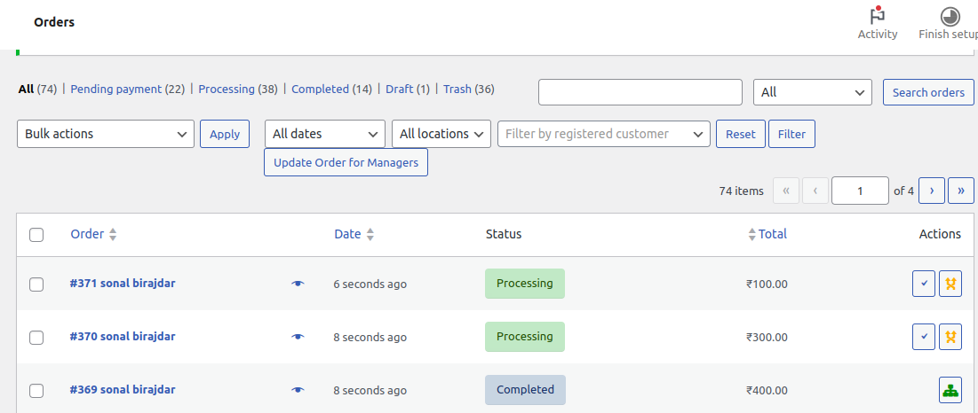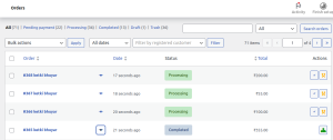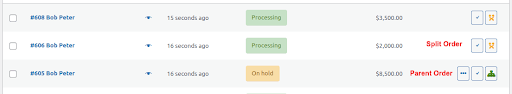 For example, if you select “Processing” as the split order status, the split order’s processing order status will be displayed in the back end after the order is split.