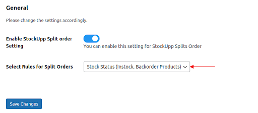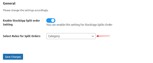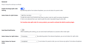 - Select Rules for Split Orders: You can Select any one rule (option) from the dropdown to decide how the order will be split. The plugin allows you to automatically split orders in a variety of ways. You can set up rules for the plugin to work with, such as splitting based on category or stock status.Please Select the appropriate rule to split orders automatically based on rules in plugin settings.
