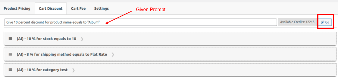 We have seamlessly incorporated AI into the “WDPDR” plugin to dynamically generate discount rules. Admin will be prompted to input relevant information, and based on these prompts, the discount rules will be generated. This implementation ensures a hassle-free and efficient method for creating rules.