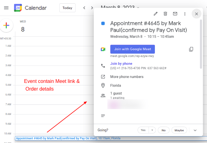 - After the admin clicks on the “Event Sync” button, an event is generated on the end user’s Google Calendar account.