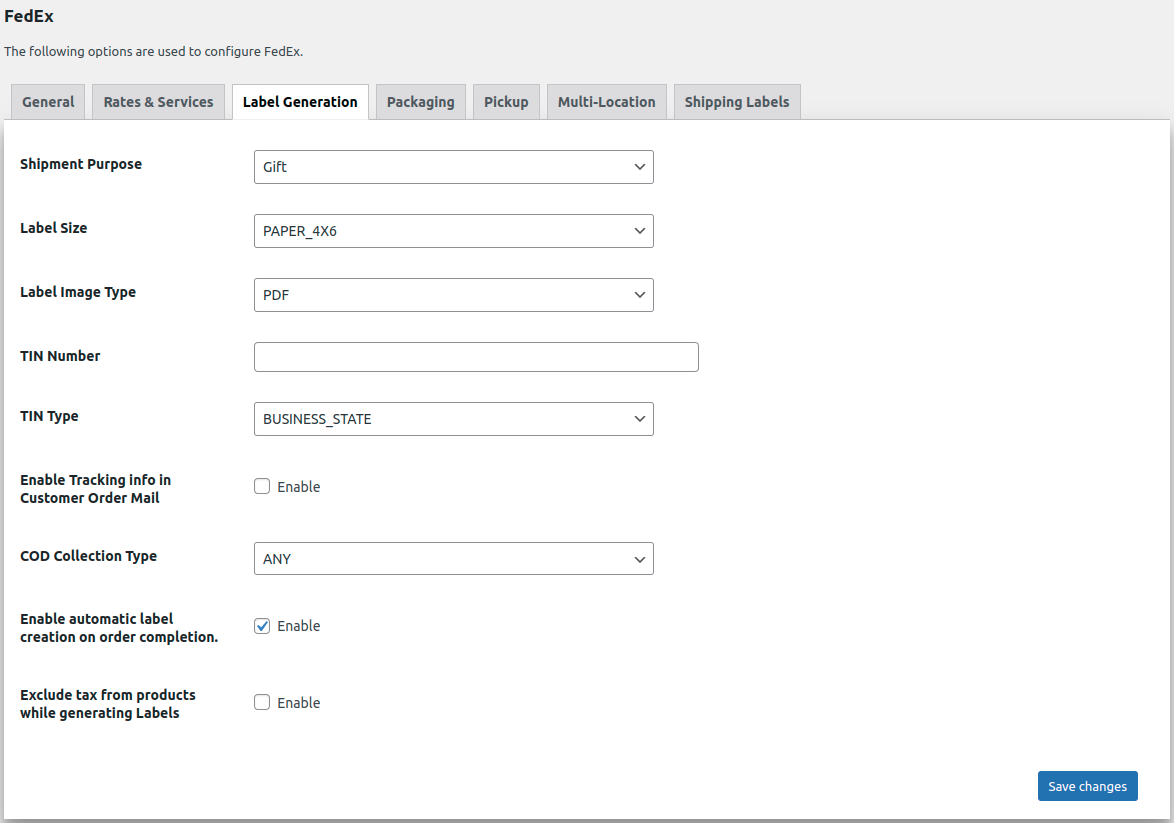 - Enable automatic label creation on order completion: Enabling this option enables the automatic creation of labels upon order completion.